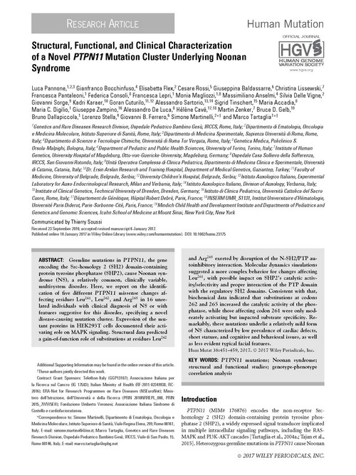 L. Pannone, G. Bocchinfuso, E. Flex, C. Rossi, G. Baldassarre, C. Lissewski, F. Pantaleoni, F. Consoli, F. Lepri, M. Magliozzi, M. Anselmi, S. Delle Vigne, G. Sorge, K. Karaer, G. Cuturilo, A. Sartorio, M. Tartaglia et al.